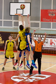 Finálovou skupinu jsme zahájili s týmem z Ústí nad Labem. Jedná se o tým běhavý, dobře střílející. Nás bohužel v tomto zápase potkala střelecká impotence. Přes nadějný začátek, kdy se nám podařilo dát z pod koše nějaké bodíky, to soupeř zatáhl a my jsme se začali trápit. Vyrovnané skóre vydrželo do závěrečné čtvrtiny, kdy jsme několikrát šli do vedení, ale soupeř hned reagoval a obrátil skóre ve svůj prospěch. Koncovka se nepovedla ani sudím. Svými nepřesnými výroky v náš neprospěch a technickou chybou rozhodli zápas. Podběhnutí neviděli, strčení neviděli, ale technickou dali. Bohužel v takto vyrovnaném zápase rozhodují maličkosti. Nám se utkání nepovedlo hlavně střelecky. Netrefili bychom prakticky nic, ale líbilo se mi, že kluci to nevzdali a bojovali až do konce. Ústí n. L. předvedlo v Jihlavě velmi hezký a rychlý basketbal.